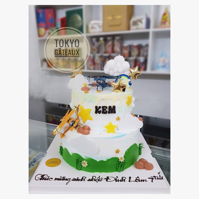Bánh sinh nhật máy bay bầu trời 2 tầng
