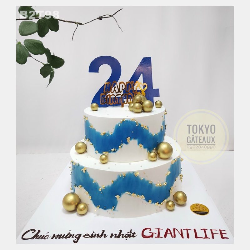 _ Bánh cốt vani, kem tươi, trang trí vảy vàng, số fomex.