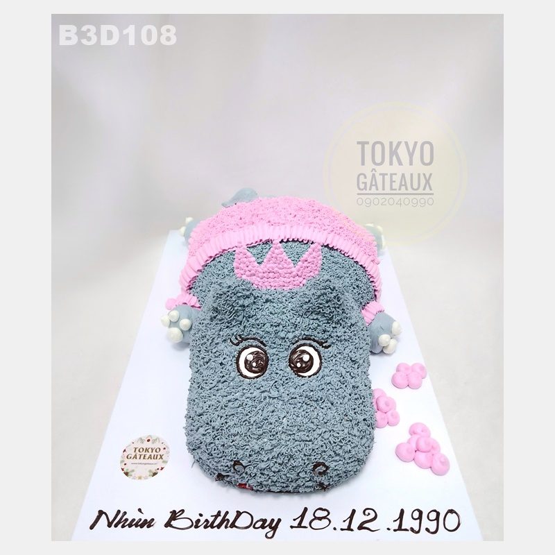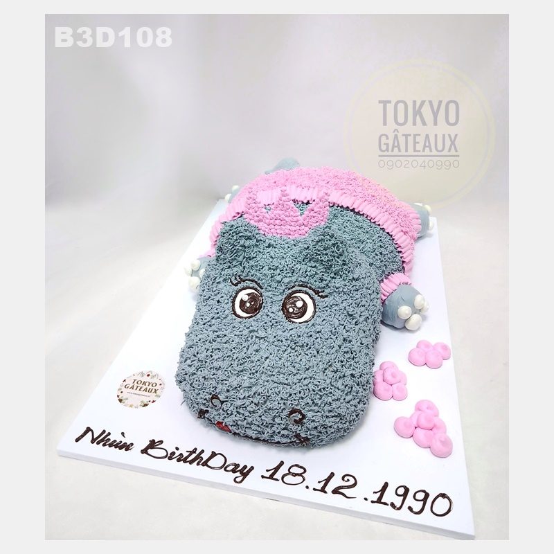 _ Bánh cốt vani, kem tươi, tạo hình hà mã 3D.