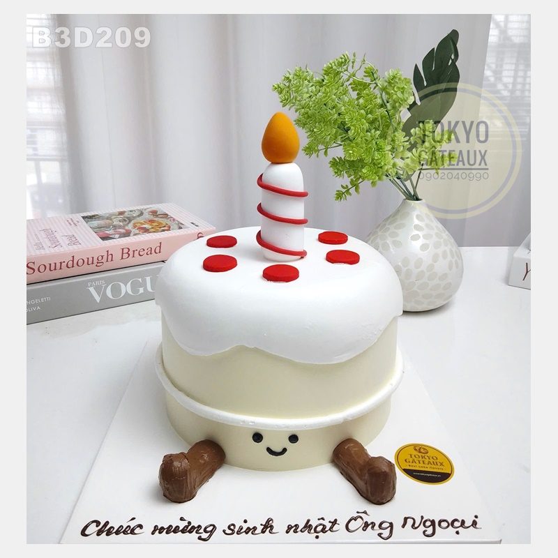 _ Bánh cốt vani, kem tươi, trang trí nến 3D.
