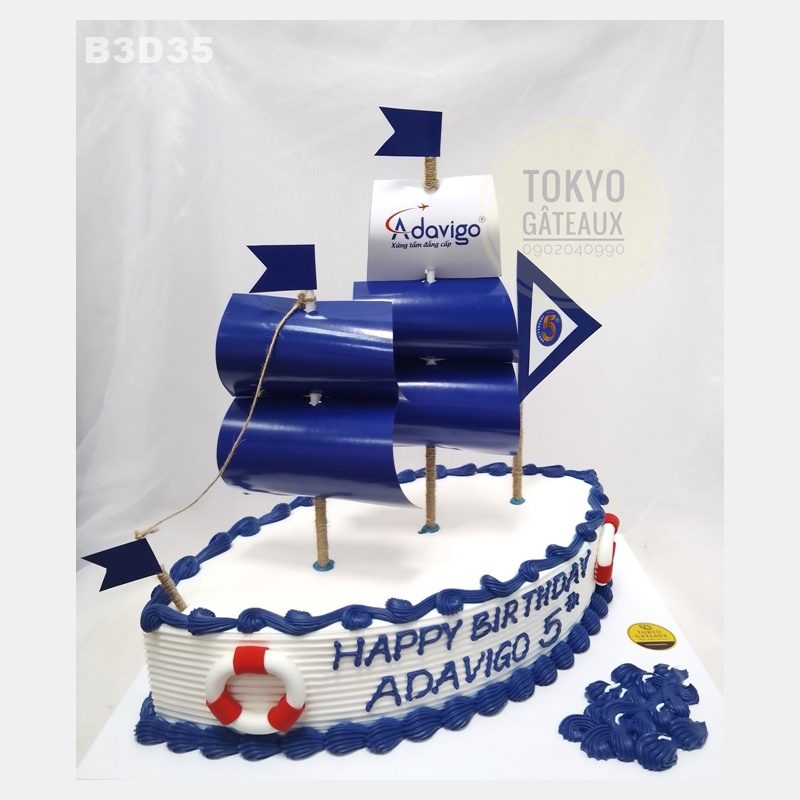 Bánh sinh nhật Thuyền Buồm Hy Vọng trang trí bắt mắt, hiện đại, được nhiều người ưa chuộng.