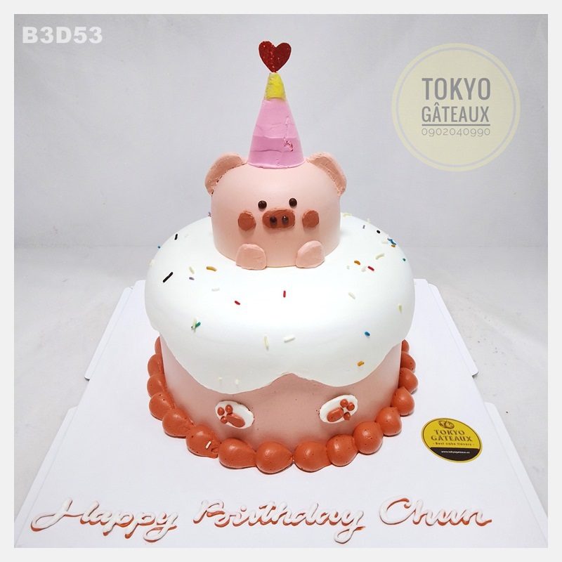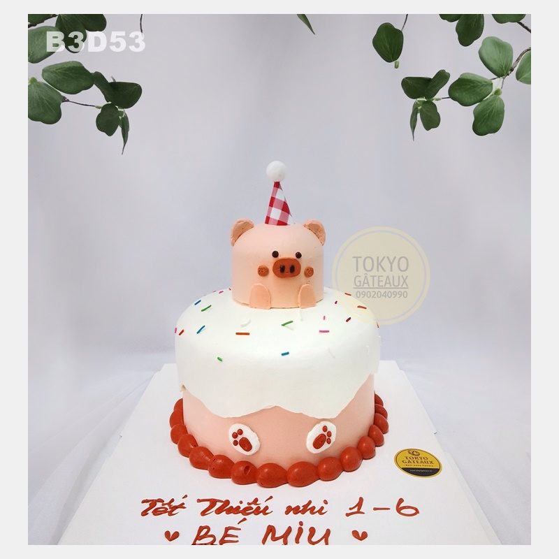 Bánh sinh nhật Heo con đáng yêu được tạo hình chú heo con đáng yêu cùng lớp kem chảy ngọt ngào. Chiếc bánh được các bạn trẻ vô cùng ưa chuộng.