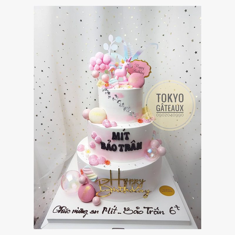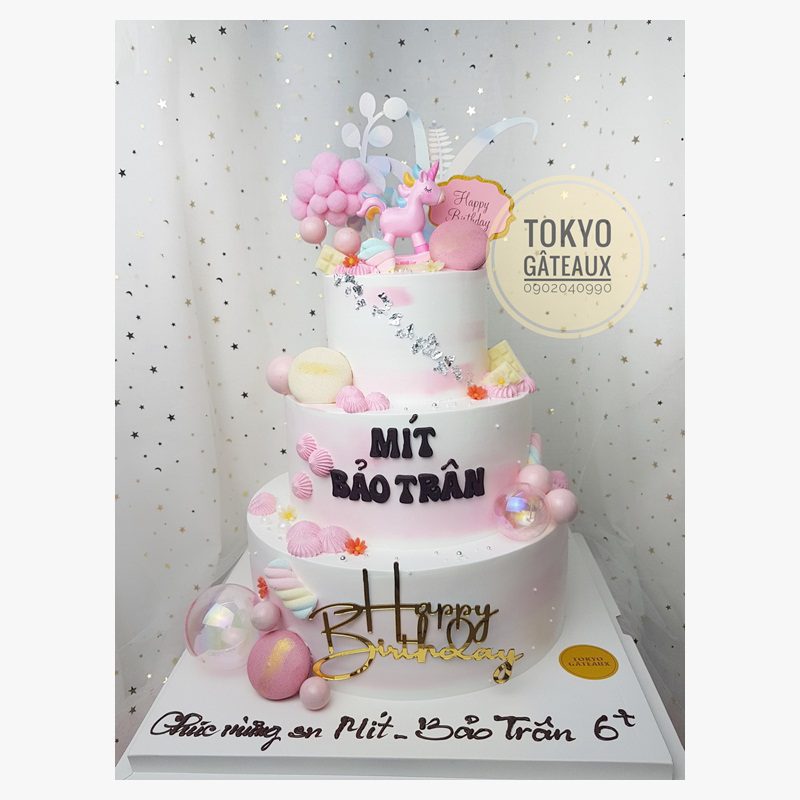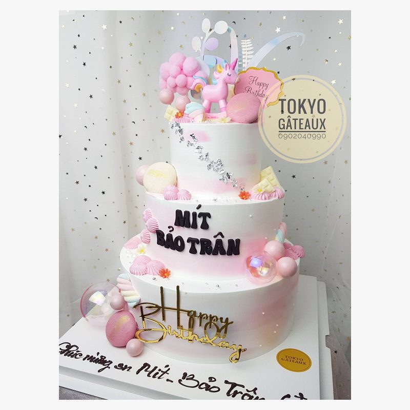 Bánh sinh nhật Unicorn Bập Bênh 3 Tầng phù hợp với tiệc tại nhà hàng, tiệc sinh nhật cần làm bánh đẹp, lộng lẫy, hoành tráng.