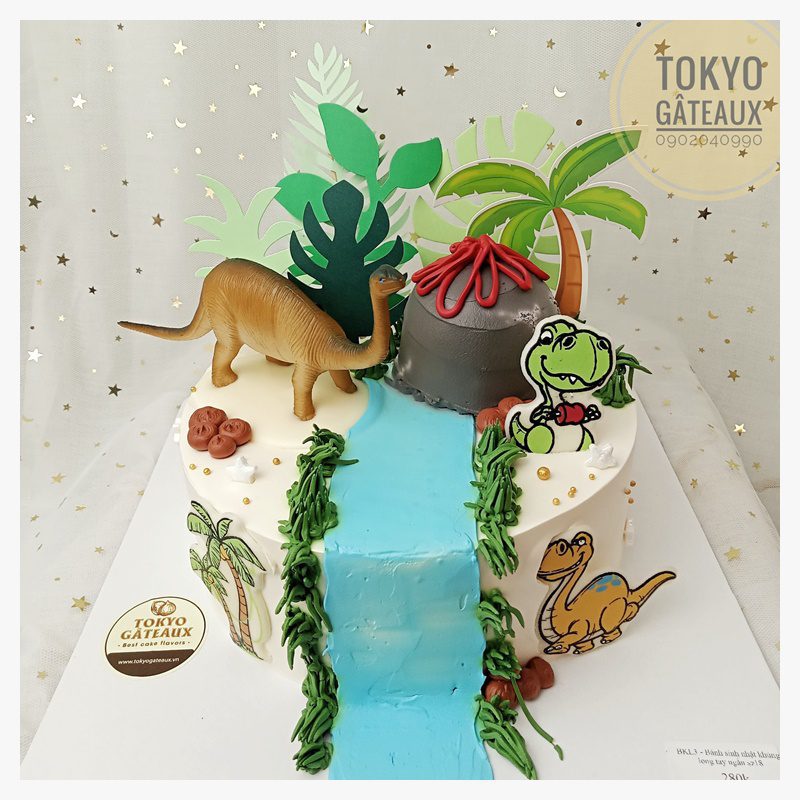 _ Bánh cốt vani, kem tươi, trang trí phụ kiện khủng long