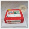 _ Bánh đi kèm hộp có tên, địa chỉ, sđt của công ty được in trên vỏ hộp, đế bánh có dán logo “Tokyo Gâteaux” màu vàng.