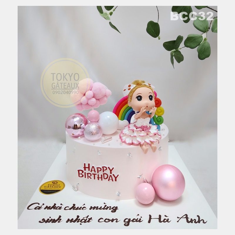 _ Bánh cốt vani, kem tươi, trang trí công chúa.