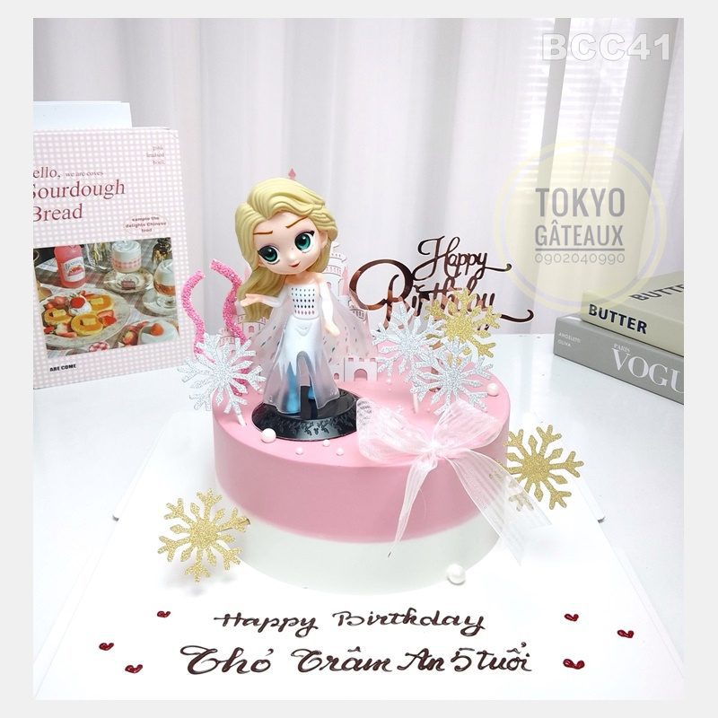 _ Bánh cốt vani, kem tươi, trang trí Elsa.