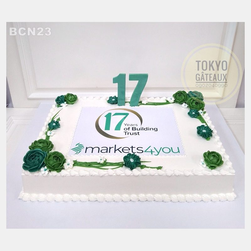 Bánh sinh nhật Green Rose trang trí hoa kem tươi và in ảnh theo yêu cầu khách hàng. Chiếc bánh phù hợp với những sự kiện doanh nghiệp.