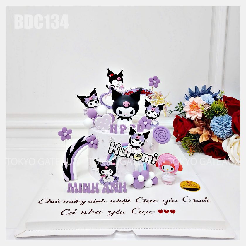 Thông tin chi tiết ảnh mẫu: Bánh cốt vani, kem tươi, trang trí Kuromi,…