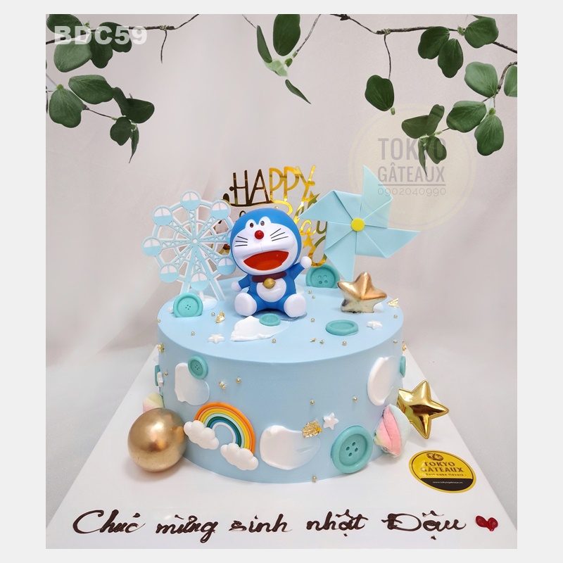 Bánh sinh nhật Chong Chóng Tre được lấy ý tưởng từ bộ phim hoạt hình nổi tiếng, gắn liền với nhiều thế hệ – “Doraemon”. Thông tin chi tiết ảnh mẫu: _ Bánh cốt vani, kem tươi, trang trí Doraemon. _ Kích thước: đường kính 18cm, cao 8cm.Các size bánh cơ bản tại Tokyo Gâteaux: