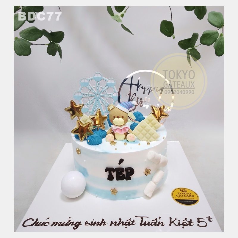 _ Bánh cốt vani, kem tươi, trang trí gấu đồ chơi.