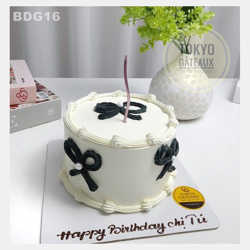 Bánh sinh nhật Black Coquette trang trí đơn giản với họa tiết coquette đen. Chiếc bánh được các bạn nữ vô cùng ưa chuộng.