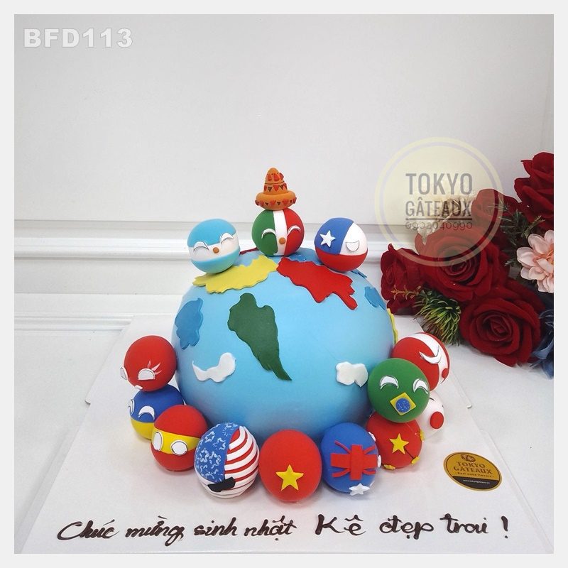 Bánh sinh nhật Các Quốc Gia trang trí các lá cờ với những biểu cảm ngộ nghĩnh. Chiếc bánh chắc chắn sẽ khiến các bé vô cùng hứng thú.