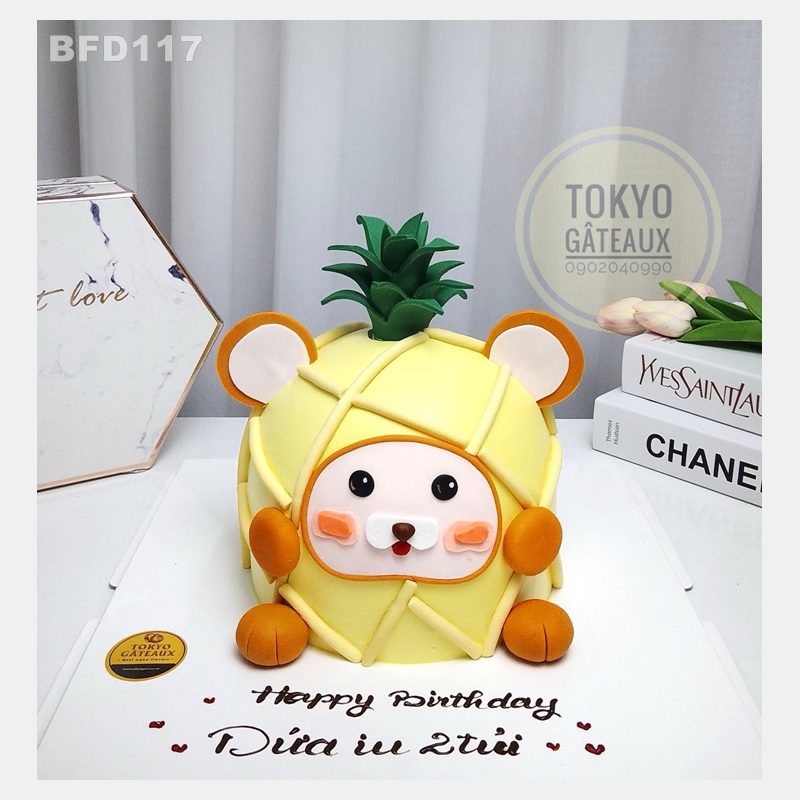 Bánh sinh nhật Cún Dứa tạo hình chú cún khoác bên ngoài bộ đồ dứa. Chiếc bánh được các bé và các bạn trẻ vô cùng yêu thích.
