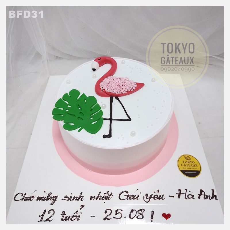 Bánh sinh nhật Chim hồng hạc được trang trí vô cùng tỉ mỉ với gam màu hồng tươi tắn. Chiếc bánh được các bạn trẻ vô cùng yêu thích.