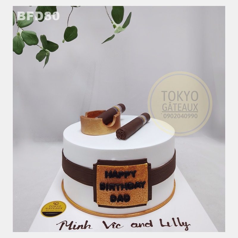 Bánh sinh nhật Cigar với điểm nhấn là điếu xì gà được nặn hoàn toàn từ fondant một cách tỉ mỉ vô cùng chân thật.