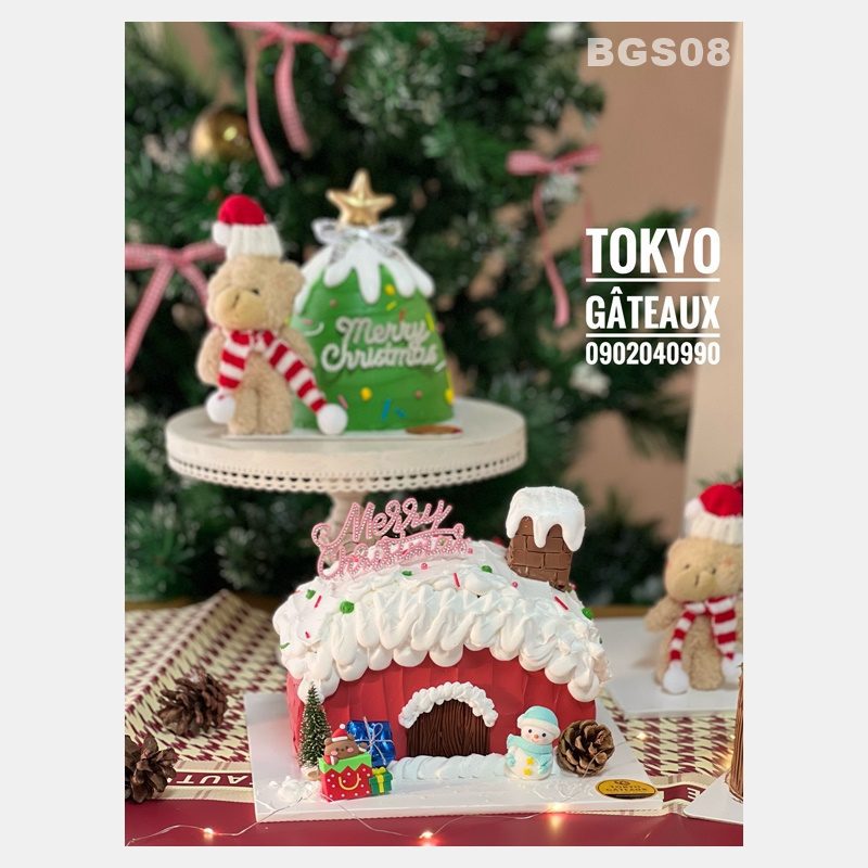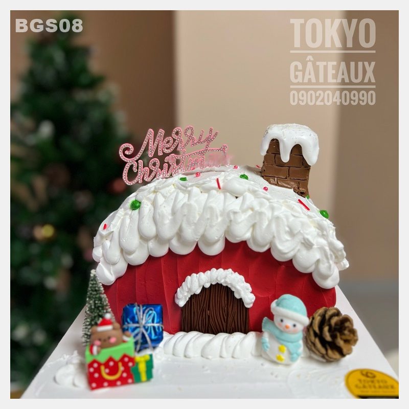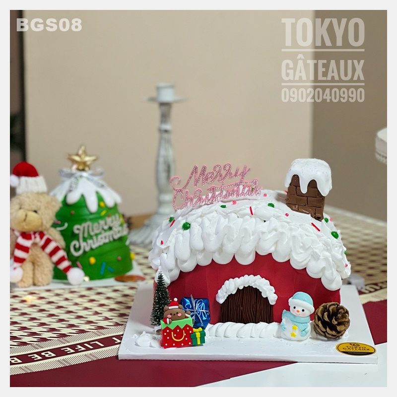 Bánh sinh nhật Ngôi Nhà trang trí theo vibe Giáng Sinh với màu sắc sặc sỡ. Chiếc bánh được các bé vô cùng yêu thích.