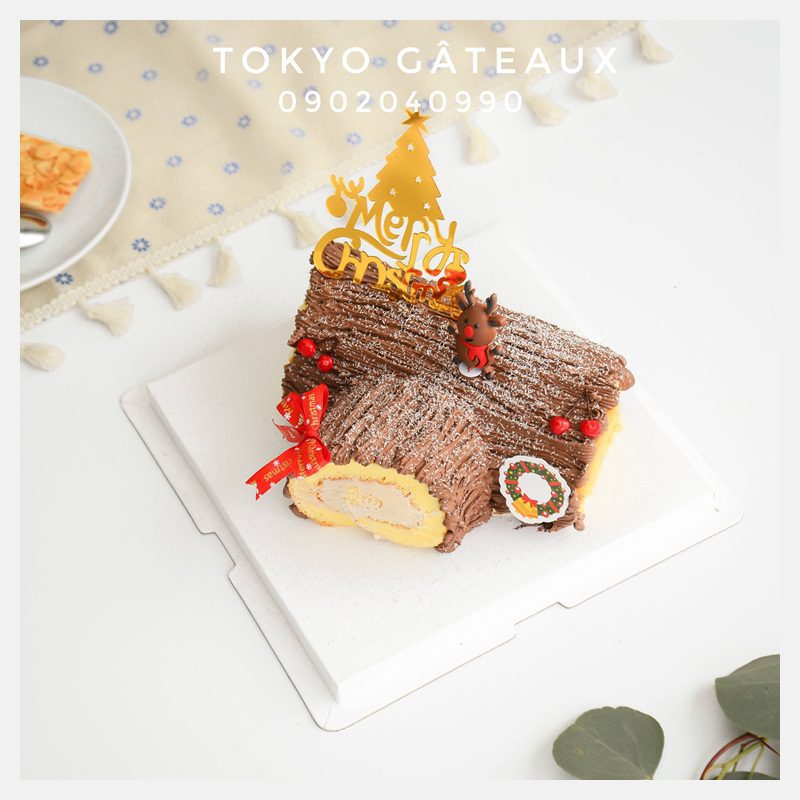 _ Bánh cốt vani, kem tươi, tạo hình khúc gỗ
