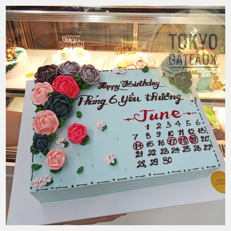Bánh sinh nhật cuốn lịch vuông trang trí hoa kem tươi được các chị em vô cùng yêu thích.
