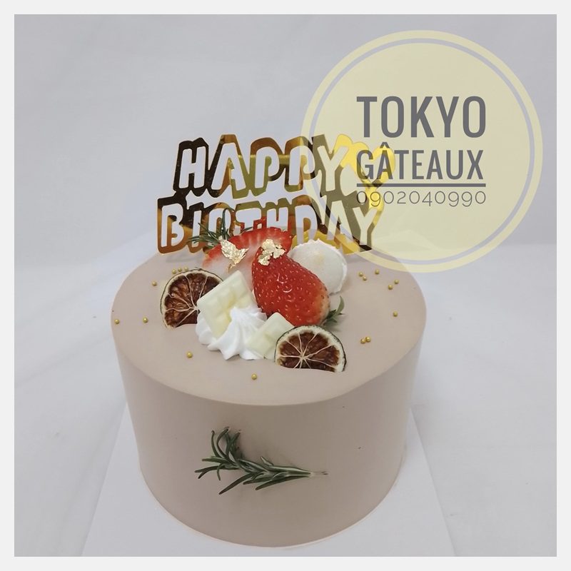 - Bánh đi kèm hộp có tên, địa chỉ, sđt của công ty được in trên vỏ hộp, đế bánh có dán logo “Tokyo Gâteaux” màu vàng