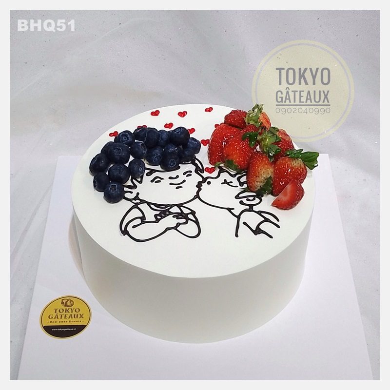 BHQ51 – Bánh sinh nhật Cô bé dâu tây & cậu bé việt quất sz18