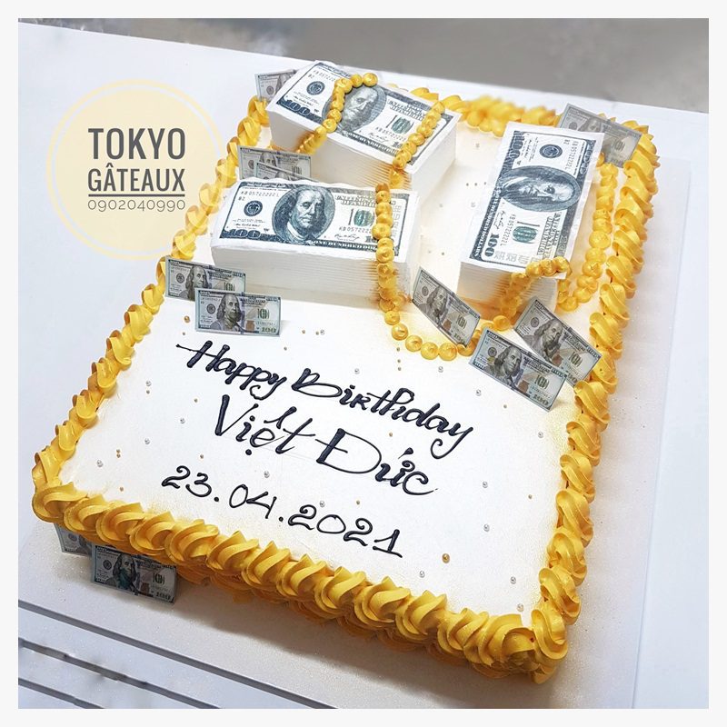 Bánh sinh nhật vuông tiền vàng phù hợp với tiệc tại nhà hàng, tiệc sinh nhật đông người cần làm bánh, đẹp, hoành tráng.