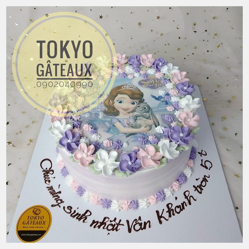 _ Bánh cốt vani, kem tươi, in ảnh công chúa Sofia