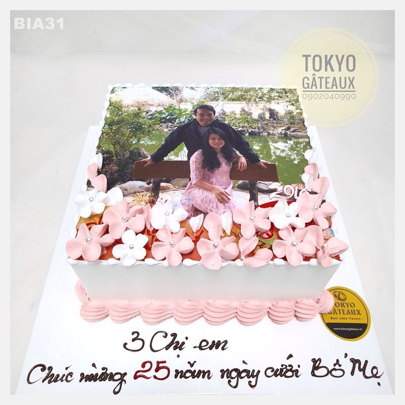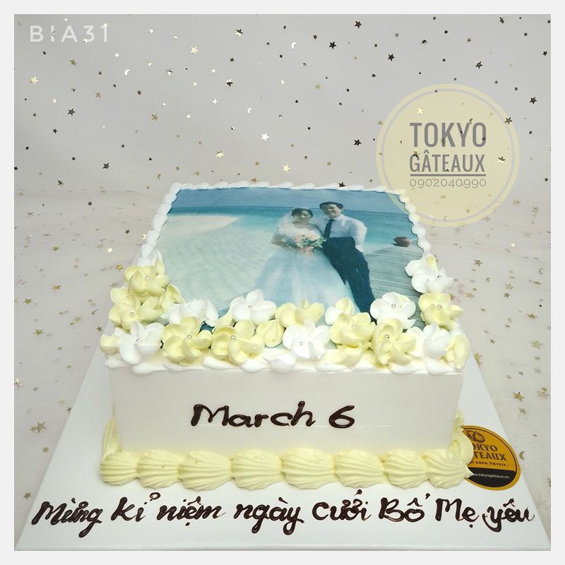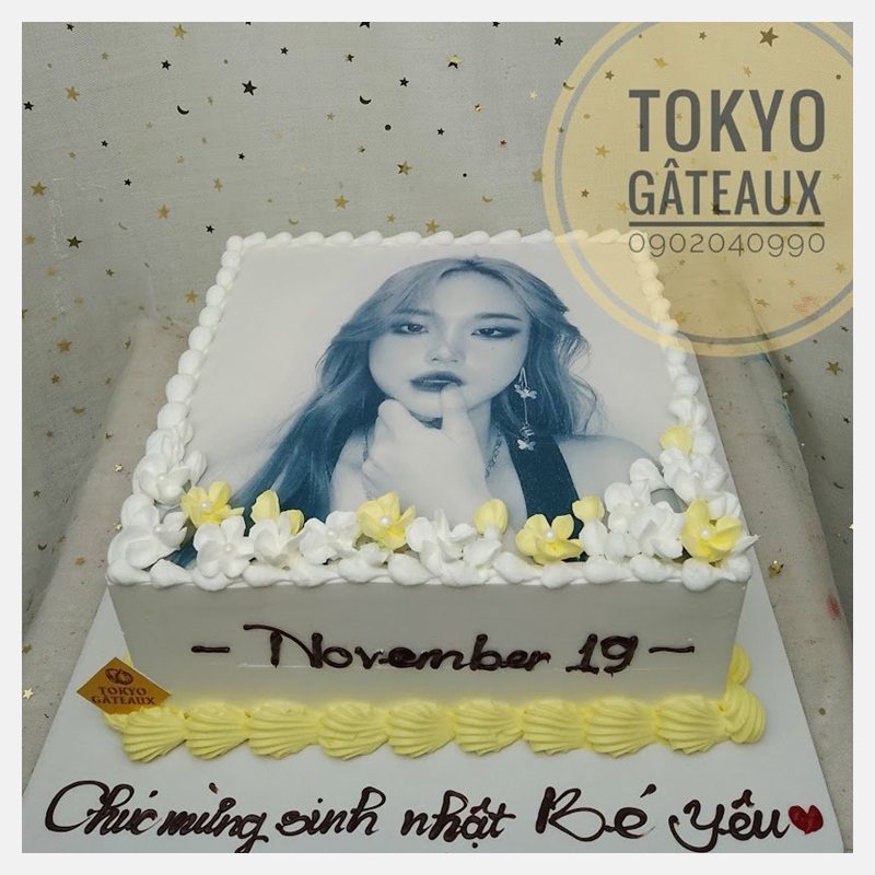 _ Bánh cốt vani, kem tươi, in ảnh theo yêu cầu khách hàng.
