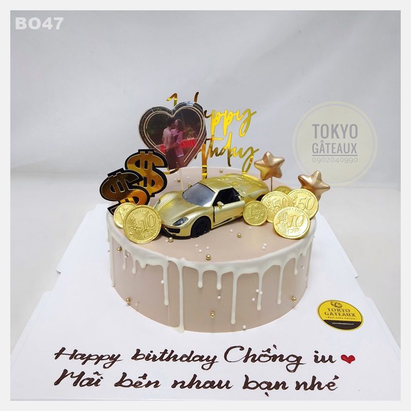 Bánh sinh nhật Oto Mạ Vàng được trang trí oto đồ chơi mạ vàng hiện đại với lớp kem socola phù hợp với những bạn yêu thích socola.