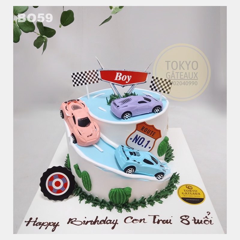 Bánh sinh nhật Đường Đua No.1 tạo hình đường đua với dàn ô tô đồ chơi. Chiếc bánh được các bé trai vô cùng yêu thích.