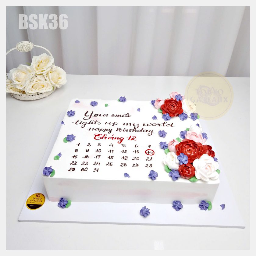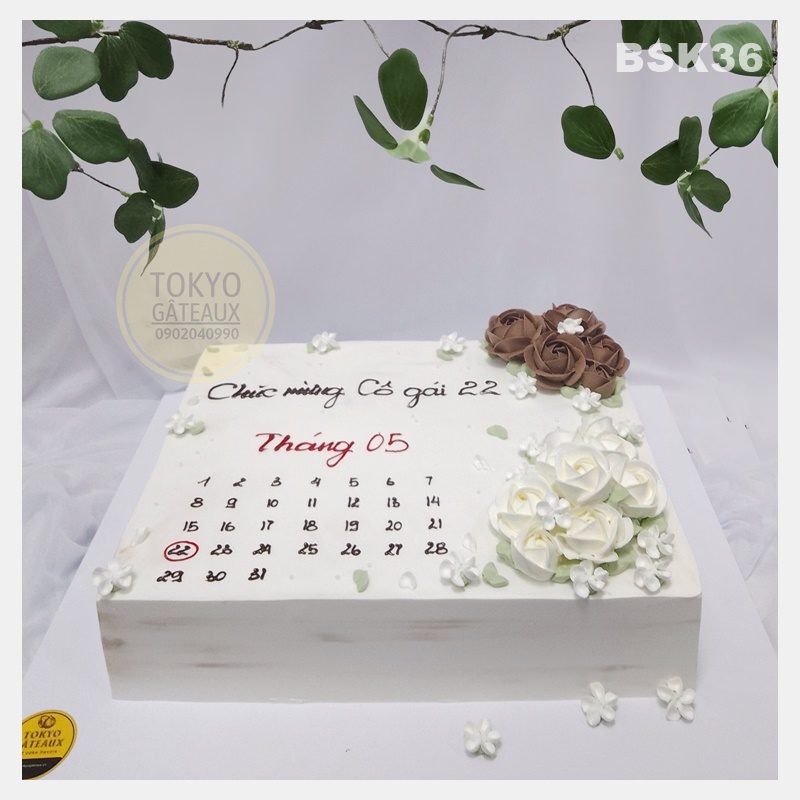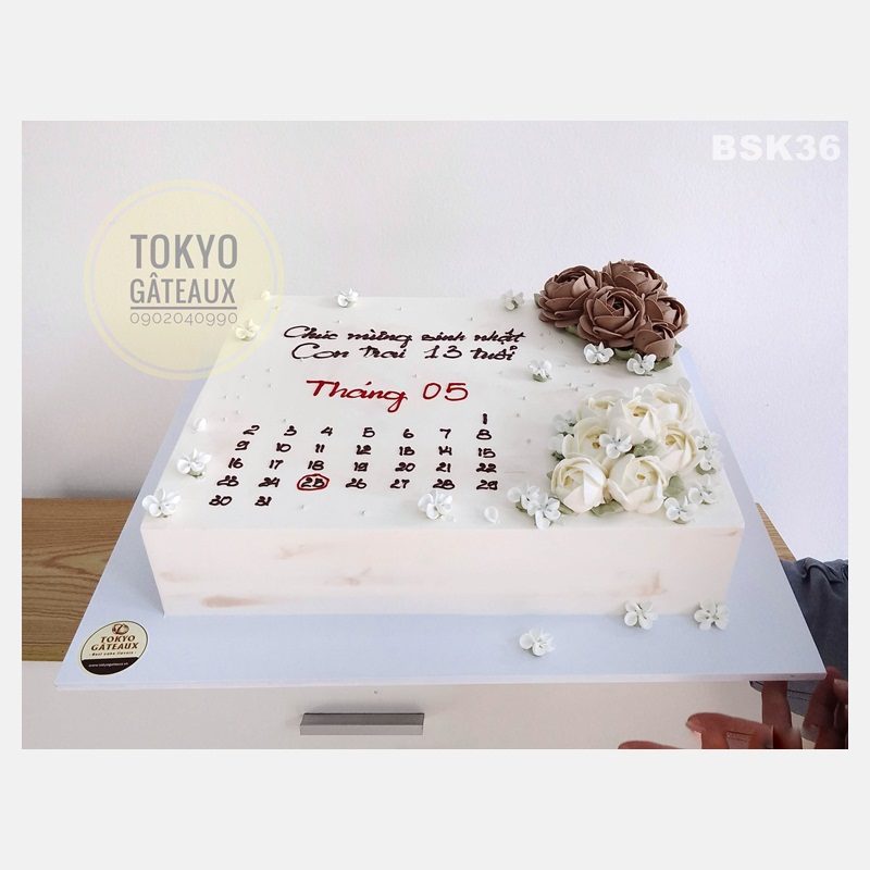 _ Bánh cốt vani, kem tươi, trang trí hoa kem tươi, cuốn lịch.