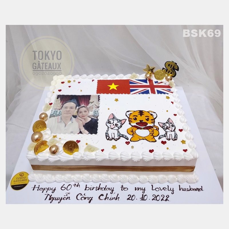 Bánh sinh nhật In ảnh được trang trí, vẽ hình hổ và mèo, in ảnh theo yêu cầu của khách hàng.