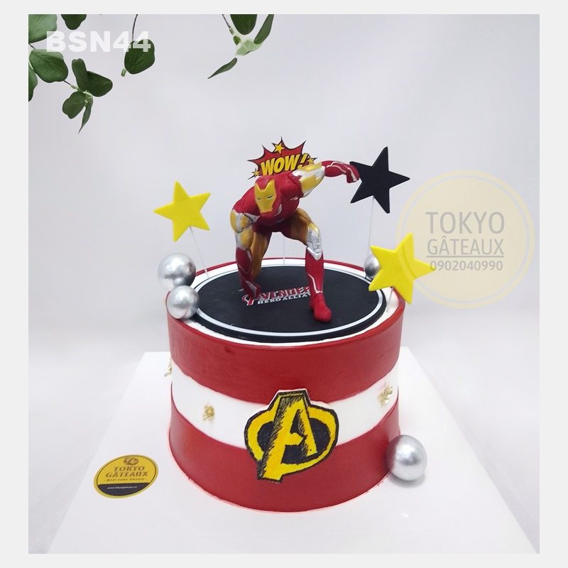 _ Bánh cốt vani, kem tươi, trang trí Iron Man.