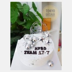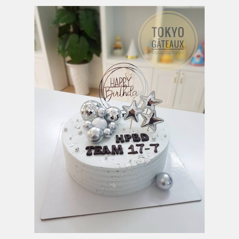 Bánh sinh nhật ngôi sao bạc lấy tone màu bạc làm chủ đạo. Sự kết hợp thiết kế hiện đại và màu bạc làm tôn vẻ sang trọng của bánh.