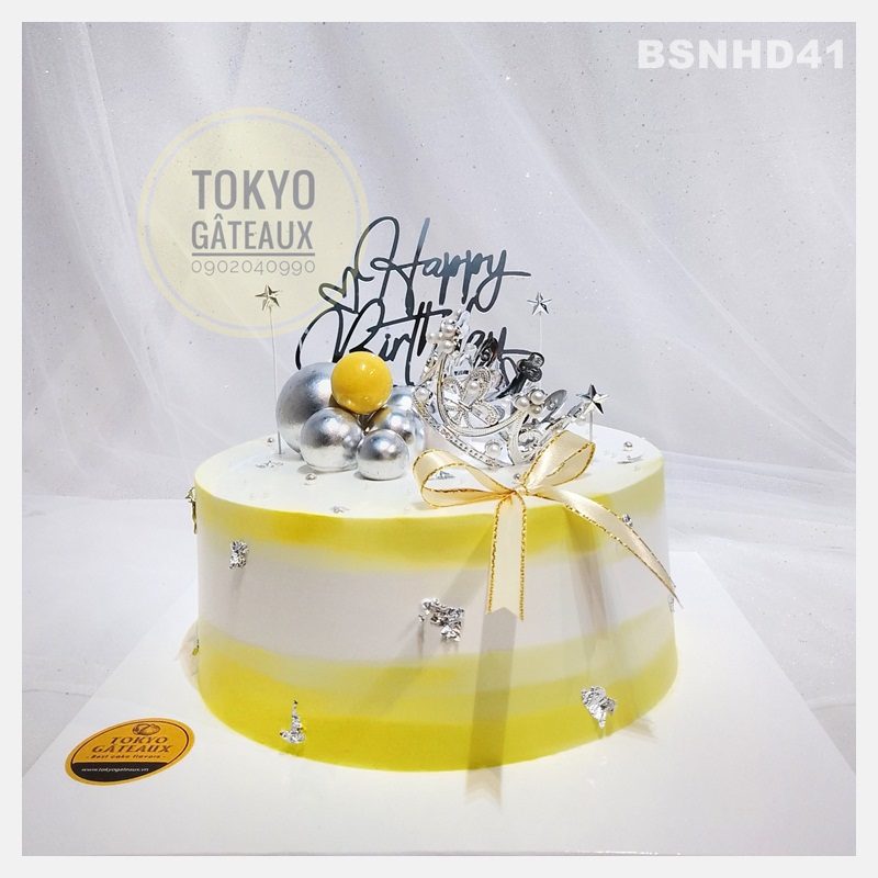 - Bánh đi kèm hộp có tên, địa chỉ, sđt của công ty được in trên vỏ hộp, đế bánh có dán logo “Tokyo Gâteaux” màu vàng