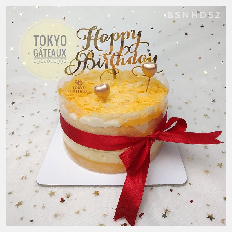 - Bánh đi kèm hộp có tên, địa chỉ, sđt của công ty được in trên vỏ hộp, đế bánh có dán logo “Tokyo Gâteaux” màu vàng
