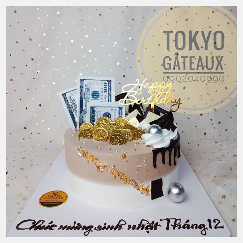 Bánh sinh nhật Vảy vàng tài lộc được trang trí sang trọng và hiện đại, thuộc dòng bánh cao cấp của Tokyo Gâteaux