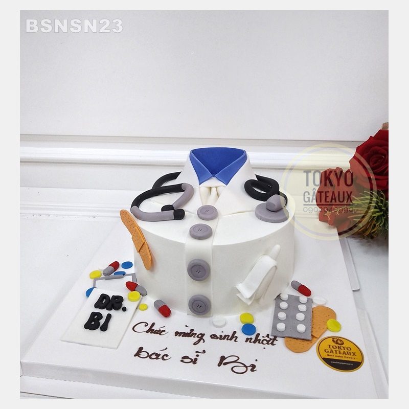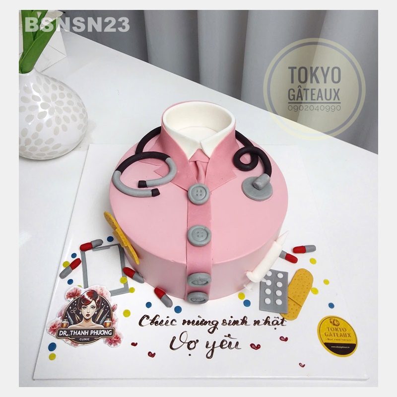 Bánh sinh nhật Bác Sĩ tạo hình chiếc áo blouse trắng. Chiếc bánh phù hợp để tặng cho các y bác sĩ nhân ngày Thầy thuốc Việt Nam.