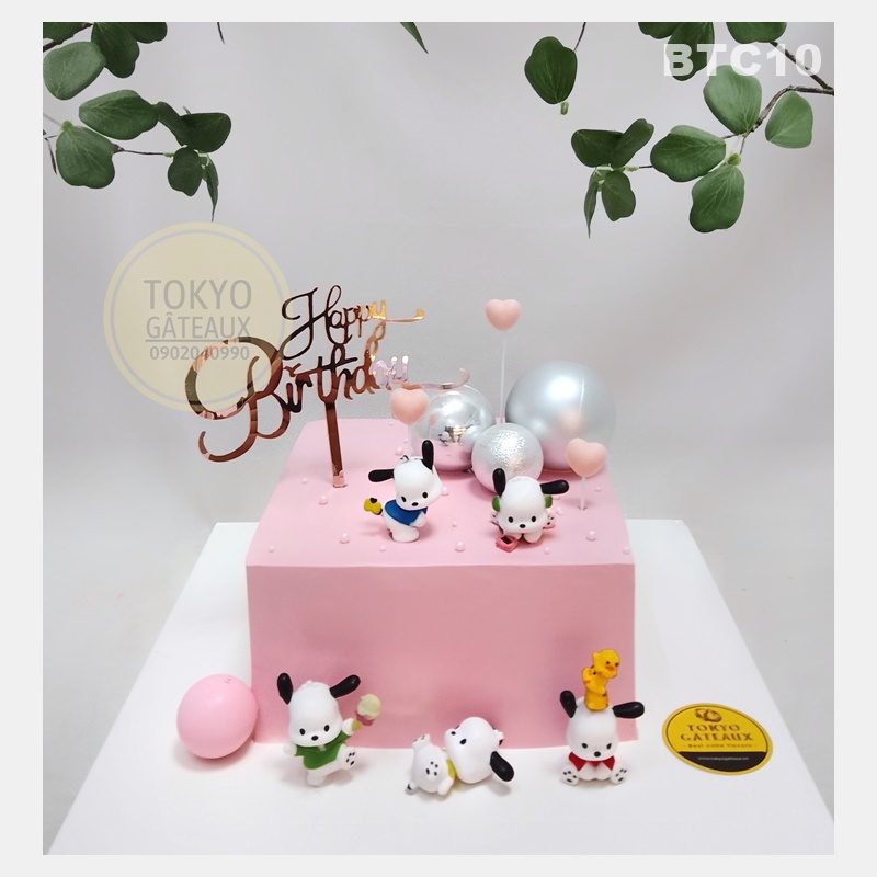 _ Bánh cốt vani, kem tươi, trang trí cún đồ chơi.