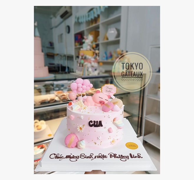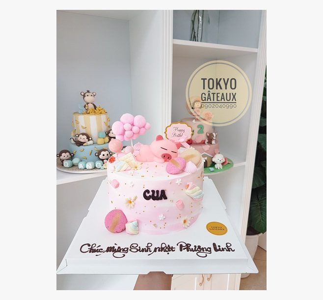Bánh sinh nhật Heo con say giấc mây hồng dành cho người yêu chú heo dễ thương này hay người tuổi heo và thích màu hồng.