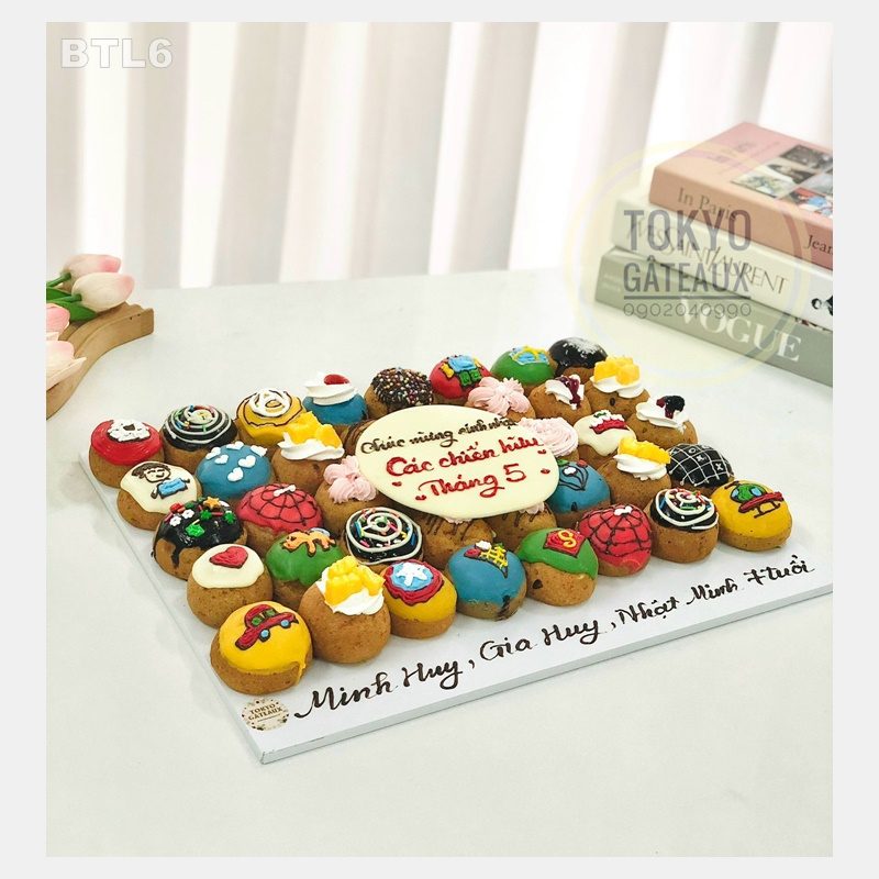 Set 40 Bánh Su Sing trang trí trên mỗi chiếc bánh một hình vẽ riêng. Chiếc bánh phù hợp với những sự kiện lớp học, nhiều người tham gia.