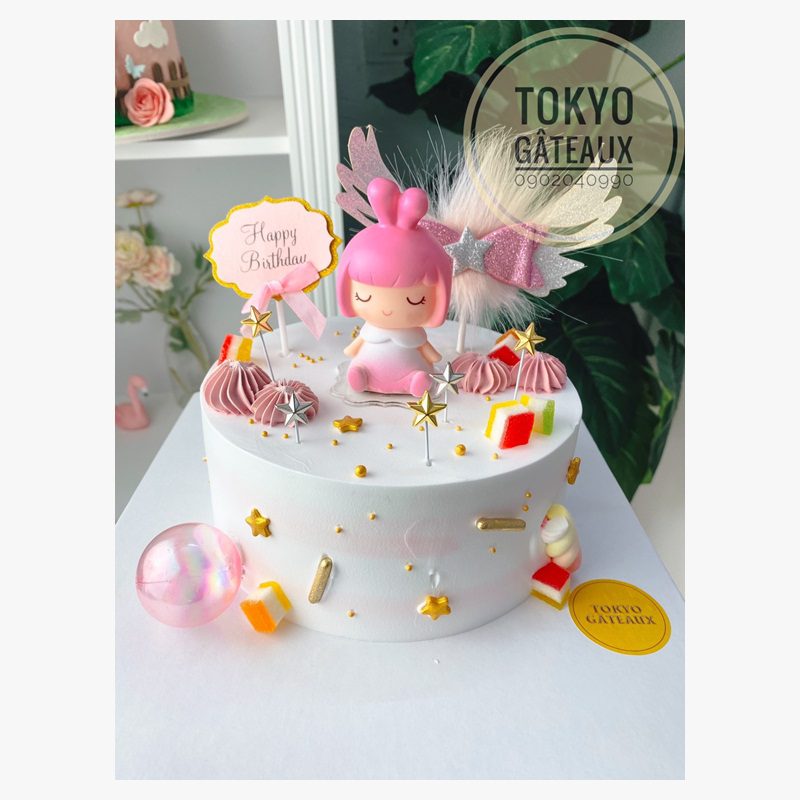 Bánh sinh nhật em bé thiên thần dành cho em bé yêu thích màu hồng mộng mơ, mẫu bánh hiện có sẵn tại Tokyo Gâteaux.