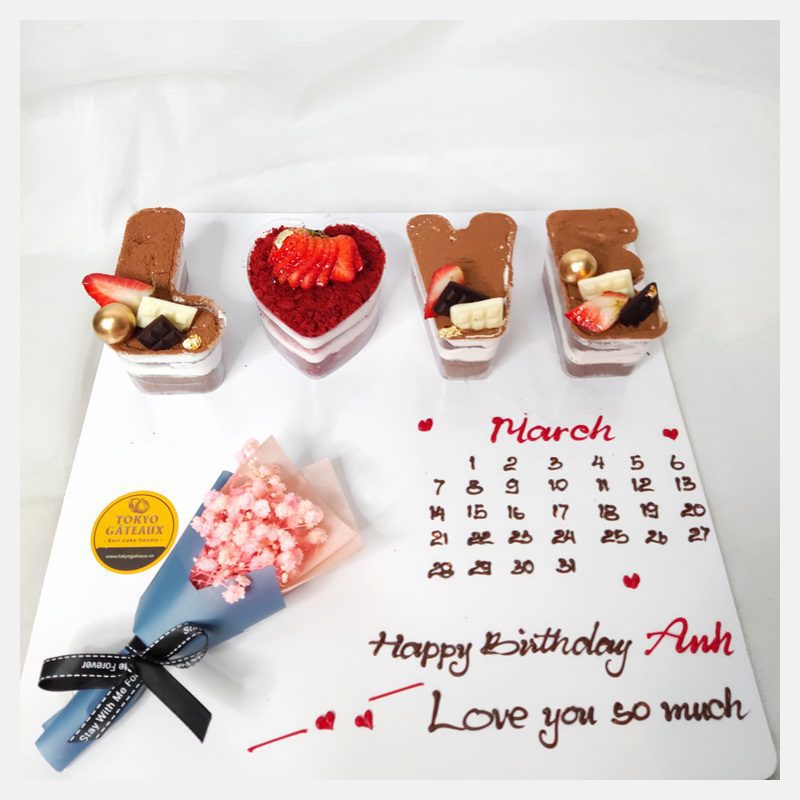 Set bánh sinh nhật LOVE trang trí hiện đại, bắt mắt, chắc chắn sẽ là một món quà ý nghĩa cho phái đẹp nhân ngày 8/3 sắp tới.