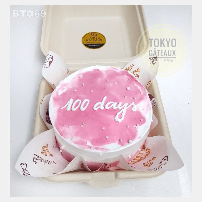Bento Cake 100 Days với tone hồng baby nữ tính và lãng mạn chắc chắn sẽ mang đến cho những cặp đôi một ngày kỉ niệm đáng nhớ.