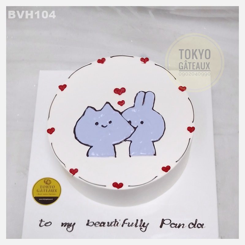 Bánh sinh nhật Bunny loves cat được vẽ hình thỏ và mèo một cách ngộ nghĩnh và đáng yêu, chiếc bánh được các bạn trẻ vô cùng yêu thích.