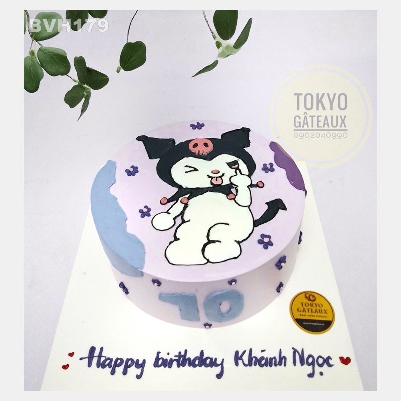 _ Bánh cốt vani, kem tươi, vẽ hình Kuromi.