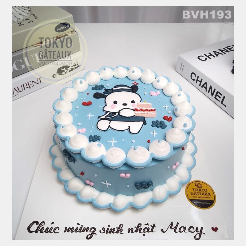 _ Bánh cốt vani, kem tươi, vẽ hình cún Pochacco.