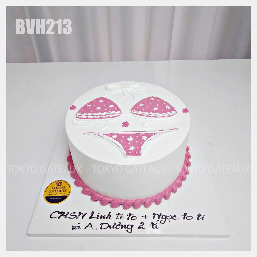 _ Bánh cốt vani, kem tươi, trang trí vẽ hình bikini.