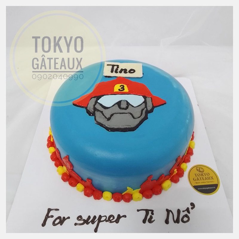 _ Bánh cốt vani, kem tươi, vẽ hình robot cứu hỏa