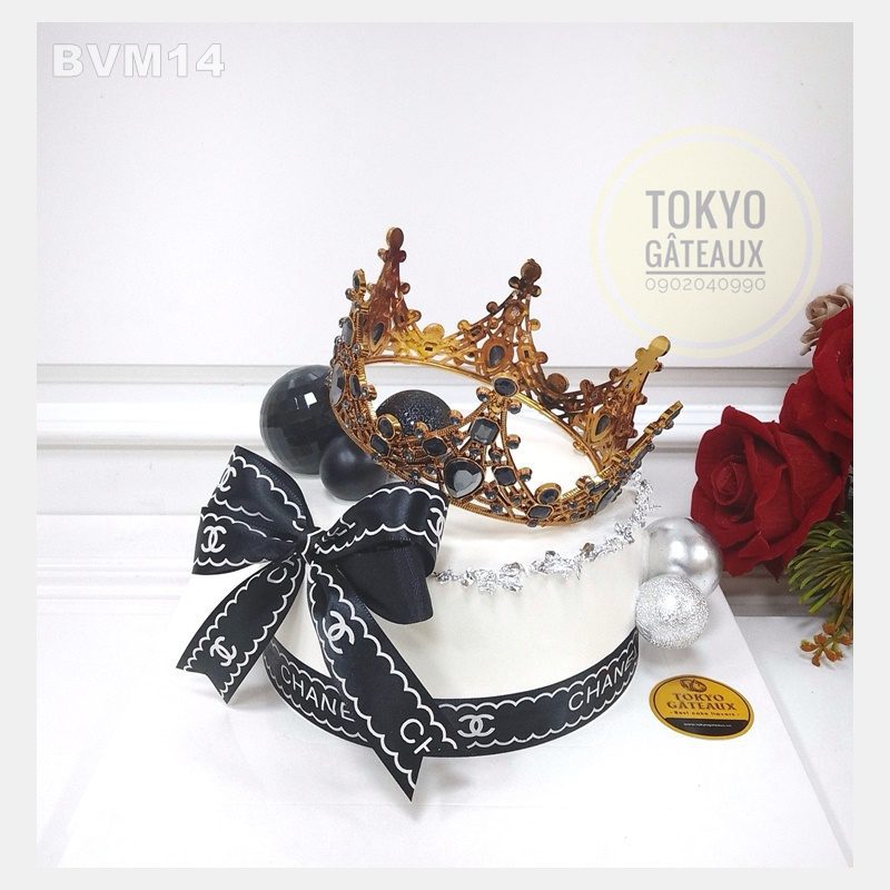 Bánh sinh nhật Dark Crown trang trí vương miện với tone màu chủ đạo của chiếc bánh là màu đen, tạo nên sự huyền bí, sang trọng.